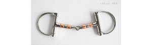 Filetto a ''D'' snodato, con tubetti di rame e di acciaio nell'imboccatura, acciaio inox. Imboccatura 13 mm, anelli 65 mm.