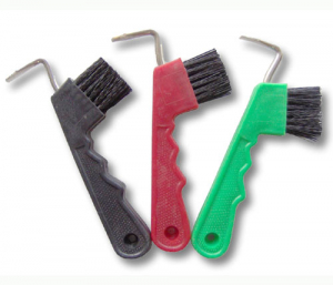 Nettapiedi con spazzolino, impugnatura in plastica sagomata e robusto gancio in metallo.
