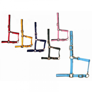 Capezza Daslo in nylon doppio foderato in nabuk, con fibbiera, occhielli e moschettone in metallo ottonato e con doppia regolazione.